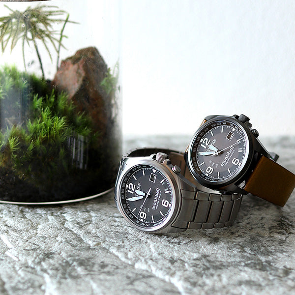 スーパーチタニウムの採用により軽くキズにも強く、また多局電波受信対応と、コラボ限定モデルにふさわしいあらゆるフィールドで活躍するハイスペックモデル。 20気圧防水、耐磁性能など、プロマスターとしてアウトドア環境での使用に耐えるスペックも備えつつタウンユースを意識したモデルに仕上がりました。 インデックスと針は、暗い場所や夜間でも視認性の良い夜光仕上げです。 オールマットなケースに肉厚で武骨な革バンドは腕にもフィットします。 裏蓋にもmont-bellの刻印入りで特別感を演出。 カジュアルスタイルにはもちろん、スーツにもあわせていただけます。 【CB0171-89E・数量限定700個】 【CB0177-23E・CB0171-11L・数量限定500個】 商品番号:CB0171-89E・CB0177-23E・CB0171-11L ななぷれ価格 (CB0171-89E・CB0177-23E) 72,360円 ななぷれ価格 (CB0171-11L) 64,800円 CB0171-89Eは▼コチラからご購入いただけます▼