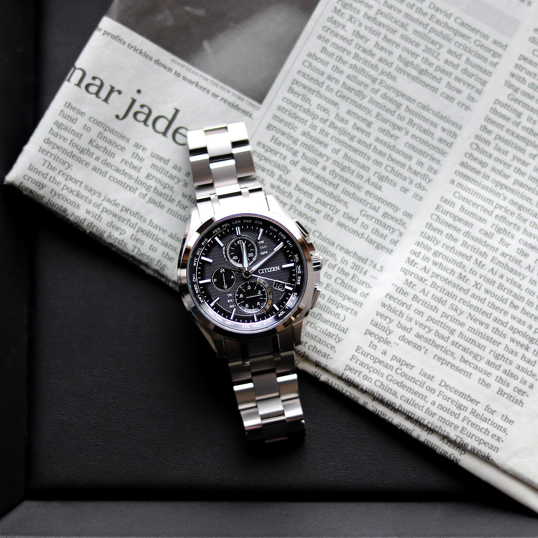 シチズン独自の技術によって表面硬度を高めたチタニウム、ワールドタイム電波時計やシンプルな操作で瞬時に世界時刻を表示するダイレクトフライトなど多機能でありながら、新ムーブメント『H804』により、9.72mm という薄さと無駄のないSolidなデザインを実現しました。 また、「針表示式」のダイレクトフライトでは初となるクロノグラフ機能を搭載。 シンプルに整頓されたスマートな文字板表現の中で、縦3つ目のクロノグラフが静かに放つ力強い表情は、時計に組み込まれた先進技術とともに、上昇志向を持つ都会的な大人の男性を満足させる仕様です。 シチズンのプロダクトポリシー”技術と美の融合”が体現された次世代ウオッチ「アテッサ」。 独創的なデザインコンセプトで貫かれたスポーティ&エレガントなスタイリングに最先端テクノロジーが惜しみなく注ぎ込まれた先進のビジネスウオッチです。 商品番号:AT8040-57E ななぷれ価格 77,000円(税込) |