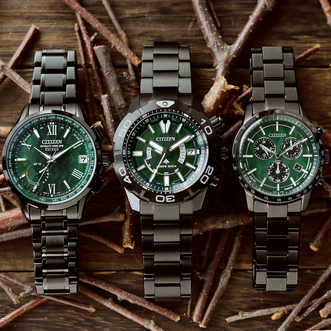 第4弾となる今作は、光ある限りどんな時も未来に向かって再生し続ける「植物の生命力」を表現しました。EXCEED(エクシード)。 樹木の重なりをイメージさせる、複数のトーンで描いた文字板のデザイン。 中央部分から黒のインクジェットグラデーションを用いることで、奥行きのある深緑の印象に仕上げました。 繊細な印象の飛びローマ数字インデックスを配置し、見やすさとエレガントさを両立しました。 時分秒針に針穴を隠すキャップを採用し、ワンランク上のこだわり感を演出しています。 商品番号:CC3057-57W・AS7146-58W・BL5497-85W ななぷれ価格 202,400円(税込) |