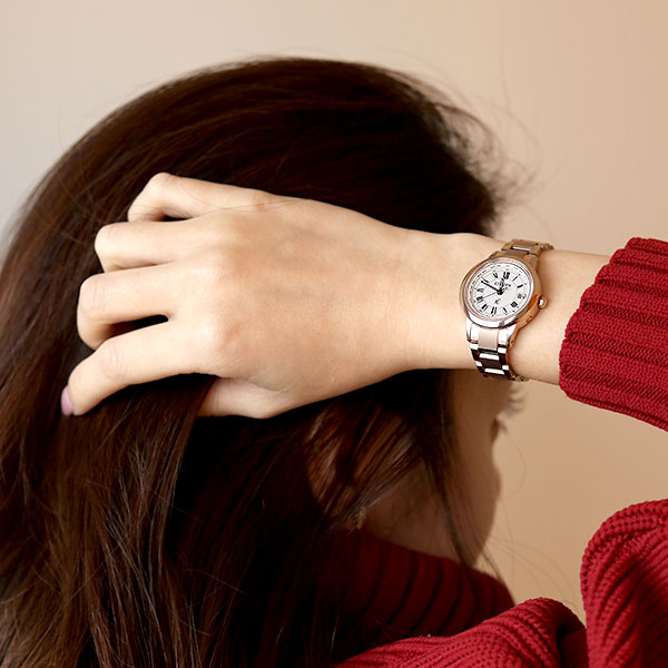 日本人の繊細な感覚から生み出されたサクラピンク*は、イエローゴルドでもない、ローズゴールドやピンクゴールドでもない、まったく新しい色です。 「美しい人」をテーマに、強さと優しさを併せ持って今を生きる女性のためにデザインしたモデル。 視認性の良いローマ数字は、凛とした印象の中にも女性らしさを感じさせるクロスシーオリジナルのフォントを採用しています。 見返しリングには、極小の金属粒をサークル状に連ねた「ミルグレインリング」を配し、これまでの腕時計にはない特長に。 ベーシックなデザインの中にも女性らしい繊細さが宿った腕時計です。 *サクラピンク、Sakura pinkは、シチズン時計株式会社の商標です。 クロスシーは北川景子さんがイメージキャラクターのブランドです💕 商品番号:EC1144-51W ななぷれ価格 62,315+税 |