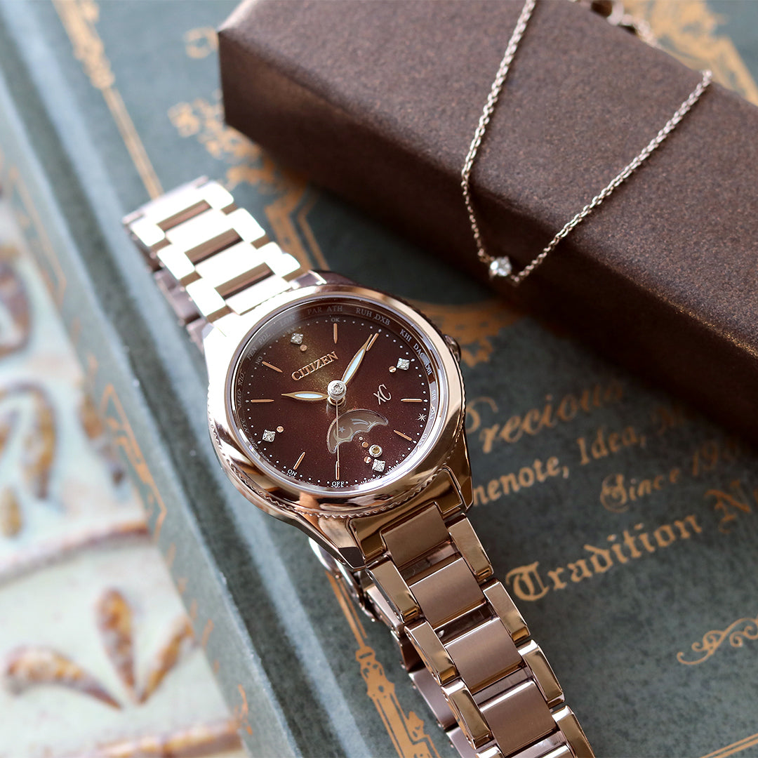 砂時計をモチーフにした幻想的なデザイン。 砂時計のように、幸せな時間がいつまでも降り積もるようにと想いを込め、ガラスの中心にダイヤモンドをセッティングしたフローレットダイヤ。 砂時計の中にラボグロウン・ダイヤモンドが浮かび上がる幻想的なデザイン。 文字板中央にラメをあしらい、砂が落ちていく6時の位置にラボグロウン・ダイヤモンド、シトリン、カットパーツをセッティングし、重なりあうビジューのように仕上げました。 クロスシーオリジナルのブレスレットがセットされています。 クロスシーは北川景子さんがイメージキャラクターのブランドです✨ 商品番号:EE1006-60W 発売日:22年11月 ななぷれ価格 114,400円 |