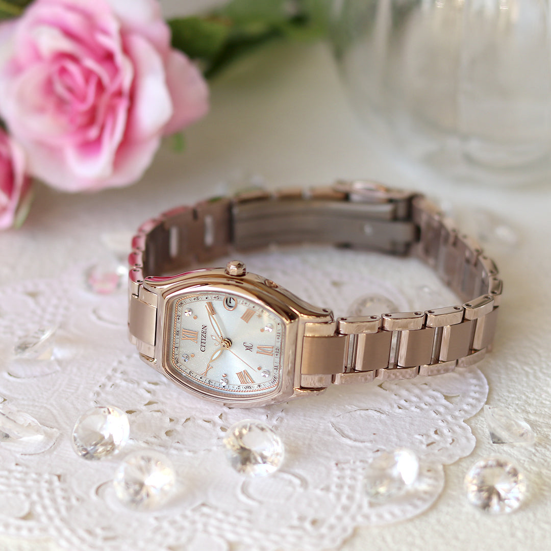 シチズンだけの技術「デュラテクトサクラピンク」が上品な美しさを際立たせます。やわらかな光を感じさせるホワイトの文字板。 パールとラメが手元を動かすたびに美しく輝きます。 シックで優美なデザインのローマ字フォントを採用。 カットパーツと4時と5時の間にあるTYO位置にはきらめく光のアクセントが女性の心をくすぐります。 前を向く女性を応援するエンパワーウオッチブランド、シチズンxC(クロスシー)。 クロスシーは北川景子さんがイメージキャラクターのブランドです 商品番号:ES9354-69B ななぷれ価格 69,520円(税込) |