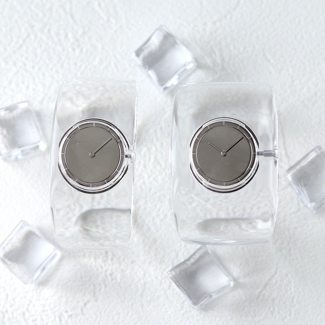 デザイナーの吉岡 徳仁(Tokujin Yoshioka)がフランス語で水(eau)を意味する「O(オー)」をコンセプトに手掛けるシリーズをご紹介。 グリルアミドという弾圧性に長けた素材を採用した透明プラスチックに時計が埋め込まれたバングル型ウォッチです。 シンプルで軽量なデザインなので、アクセサリーとしてもお使いいただけます。 そんなOシリーズから2023年、Oよりもバングルの幅がワイドに、そして腕回りの径が小さくなった、細めの手首によりフィットしたO-Boldが登場。 2モデルを並べてサイズ比較してみました。みなさんはどちらがお好みですか? (写真左:O) 商品番号:SILAW001 19,800円(税込) (写真右:O-Bold) 商品番号:NYAS001 22,000円(税込) |
