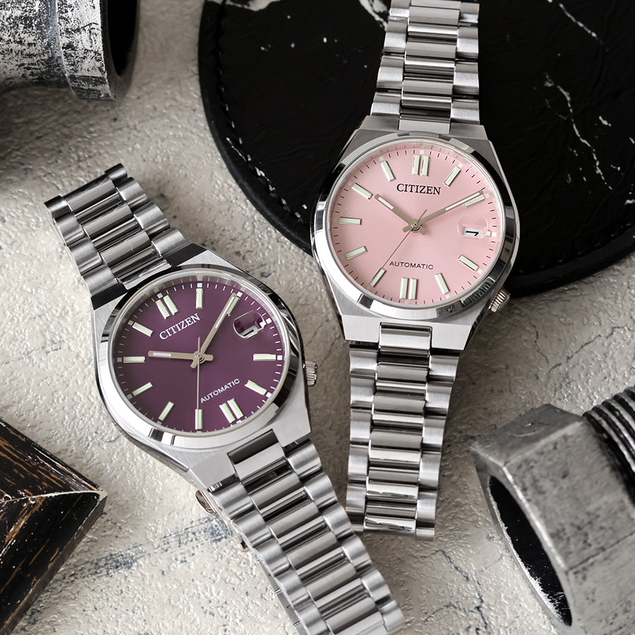 女性の腕にもなじみやすいユニセックスモデルです。 メタリックな質感の文字板に、シンプルな針とインデックスを組み合わせた3針タイプ。 カレンダー部分には視認性を高める拡大鏡レンズを採用しています。 個性的なカラーの文字盤を採用。 裏ぶたは、メカニカルウオッチならではのシースルーバック。 回転する錘(おもり)やメカの動きを楽しむことができます。 年代・シーンを問わず人気のあるカラーリングで贈りものとしてもおすすめです。 [機械式腕時計] 商品番号:NJ0200-50W・NJ0200-50Z 発売日:25年8月7日【予約商品】 |