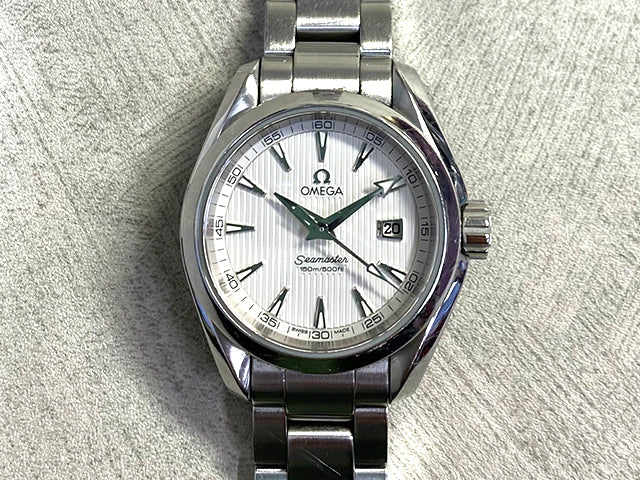 今回はオメガの定番人気モデル、シーマスターの電池交換のご依頼でした。電池交換の際に裏蓋溝、リューズ付近に細かい汚れがありましたので除去しました。