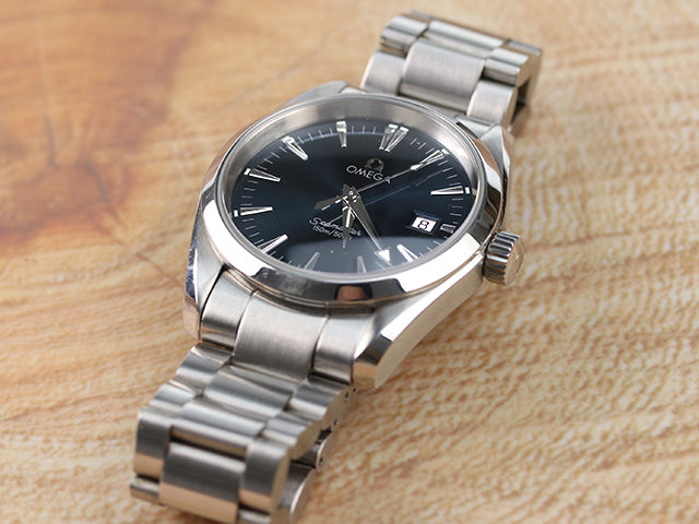 今回の分解掃除ご依頼のお時計はオメガのシーマスターアクアテラの腕時計です服に合わせやすく防水性も高くとても人気があります。