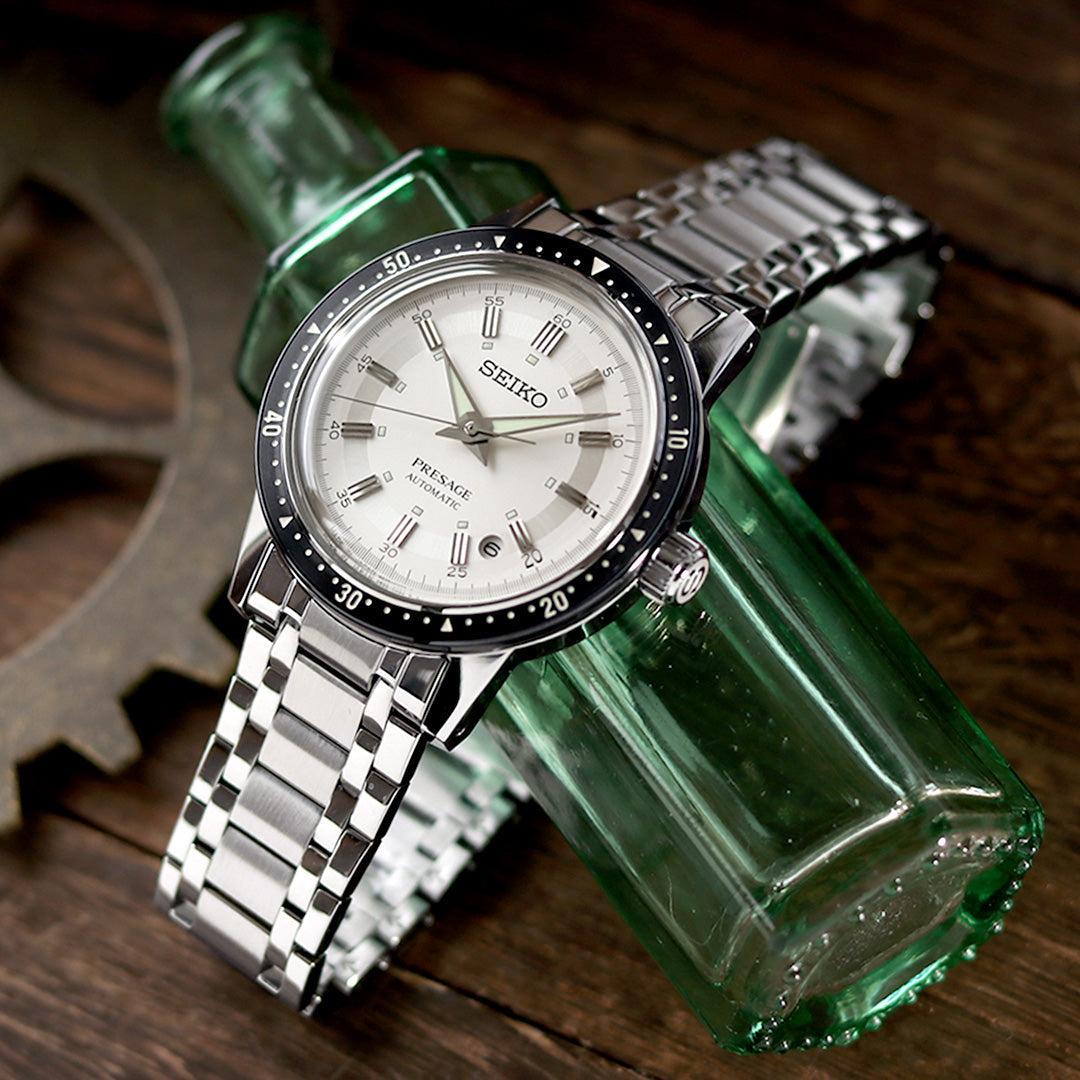 時代を超えて愛されるセイコーのヴィンテージスタイルを現代の感性と最新技術で表現したシリーズ「Style60’s」 Style60's誕生時から継続して意匠を取り入れている「クラウン クロノグラフ」は1964年に誕生し、2024年で60周年を迎えます。 クラウン クロノグラフの意匠にさらにフォーカスし、偉大なるヘリテージへの敬意を表す特別モデルとなっております。 Style60’sとしての、気軽に愉しむことが出来る魅力はそのままに、セイコーファン層に向けたマニアックなエッセンスを追加。 よりオリジナルの雰囲気に近い華奢な新型ケースに、ボックスガラスと多列の新型バンドを組み合わせることで、当時の空気感を一層醸成しながらも、現代でも着用しやすい機能性とサイズ感を装備。 ダイヤルはオリジナルのレイアウトとカラー、仕上げを踏襲し、オリジナルの持つ温もり溢れる雰囲気の中にある精緻な印象までも表現。 BOXについてもオリジナルならではの色味と素材感を取り入れ作成。 モデルと合わせることで、当時の雰囲気を一層醸し出しております。 [機械式腕時計] 商品番号:SARY235 発売日:24年1月 ななぷれ価格 73,700円(税込) |