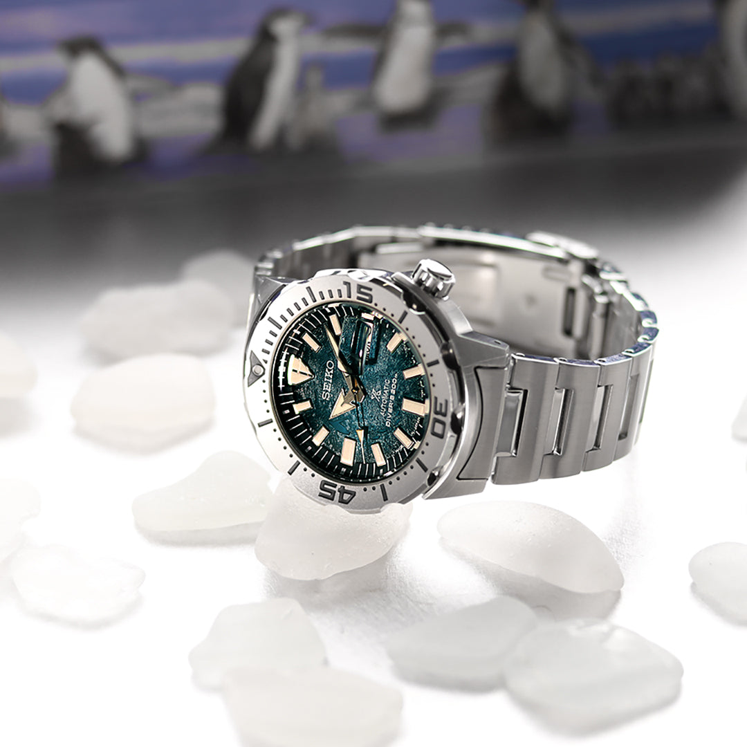 MONSTERの愛称で呼ばれるモデルに、ペンギンの住む氷の世界を想起させるホーニング仕上げのステンレスベゼルと深い海のブルーグラデーションダイヤルを採用。 【Save the Oceanについて】セイコーダイバーズを愛用いただいているダイバーや、大いなる海へ感謝の気持ちを込め、PROSPEXの売上の一部を寄付し海洋保護に貢献する取り組み。 アウトドアシーンやカジュアルスタイルにおすすめです。[機械式腕時計] 商品説明:SBDY115 発売日:22年2月11日 ななぷれ価格 51,000円(税込) |