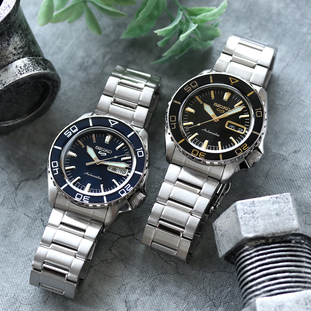 SKXのケース型をベースにSNZH系のアイコニックなデザインを取り入れつつ、5SportsのSuits styleにふさわしいデザインに正統進化。 カーブガラスを採用し、SNZH系の特徴であるグロッシーな見栄えを表現。 ダイアルデザインはオリジナルを踏襲しつつブラッシュアップ。 インデックス上面に虹挽きを施し、質感をさらに向上させカーブガラスに映える仕様に。 バンドはSNZH5系と同様に、中列にミラー面があるバンドを採用。 SKXの新スーツスタイルに相応しいデザインに仕上げております。 [機械式腕時計] 商品番号:SBSA259・SBSA261 |