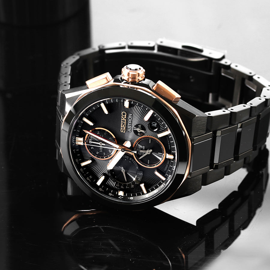 コンセプトは「輝かしい未来へ向けて」。 創業者である服部金太郎翁の信条は「常に時代の一歩先を行く」というものだった。 その信条は、SEIKOブランド誕生から現在に至るまで脈々と受け継がれ、技術革新とともに生まれた数多のプロダクトは、現在も輝きを放っております。 「輝き」をコンセプトとした本作は、輝かしい未来を目指して今後も革新を究めるSEIKOブランド100周年のマイルストーンとなる願いを込めた限定モデルとなっております。 「輝き」をテーマに衛星から見た夜の地球の情景にインスパイアされたカラーリングを採用。 漆黒の宇宙に浮かび上がる煌びやかな夜の地球の美しさを、オールブラックのケース・ブレスレットと、放射状パターンを施したグラデーションダイヤル、ピンクゴールドカラーのアクセントで表現。 ベゼル部分は、艶やかな光沢を放つブラックセラミックスベゼルと、多角形状のチタン飾り縁を組み合わせた二体構造を採用することで、より一層輝きを放つデザインに。 ブレスレットの中列とりゅうずトップには、ベゼルと同じくブラックセラミックスを採用した特別仕様に。 裏ぶたにはASTRONブランドを象徴するグローブマークが立体的にレイアウトされ、セイコーブランド100周年記念モデルに相応しい特別感を醸成。 商品番号:SBXC158 発売日:24年10月 |