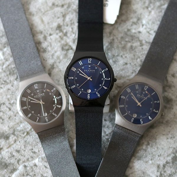 素材には軽くつけ心地の良いチタンを採用しています。 カジュアルスタイルにはもちろん、スーツやジャケット併せていただけ、仕事での使用にもぴったりです。 スライド式のベルトはご自身での調節が可能。 誕生日や記念日などにもおすすめです。 SKAGEN(スカーゲン)は1989年にデンマークにある小さな町にて誕生しました。 スタイリッシュで洗練された美しいデザインと品質の高さを手頃な価格にて実現。 無駄を省いたデザインは飽きがこず、カジュアルな服装や少しフォーマルな服装にもぴったりです。 わずか設立15年目で腕時計ブランドとして世界10位の知名度を獲得するなど、幅広い年齢層に支持されています。 商品番号:T233XLTMN・233XLTTN・233XLTTM 発売日:18年4月 ななぷれ価格 10,800円 |