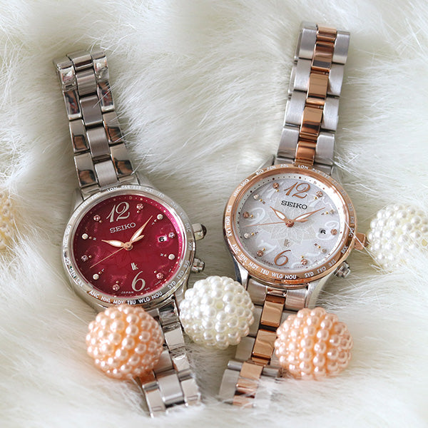 祝福する、幸運を祈る、思いやり、などのポジティブな花言葉を持ったポインセチアは、スペシャルなモデルにぴったり。 ダイヤルにもポインセチアを一輪、大胆にあしらいました。 高級感のあるデザインが大人の腕元を演出。 ワールドタイム搭載で海外旅行や出張にもお使いいただけます。 自分へのご褒美にはもちろん、プレゼントにもおすすめです。 誕生日・記念日・就職祝いなど、大切な方へのプレゼントにも人気! 【全世界数量限定2000個】 ルキアは綾瀬はるかさんがイメージキャラクターのブランドです💕 商品番号:SSVV043・SSVV044 発売日:19年10月25日 ななぷれ価格 (SSVV043) 49,280円 ななぷれ価格 (SSVV044) 51,590円 |