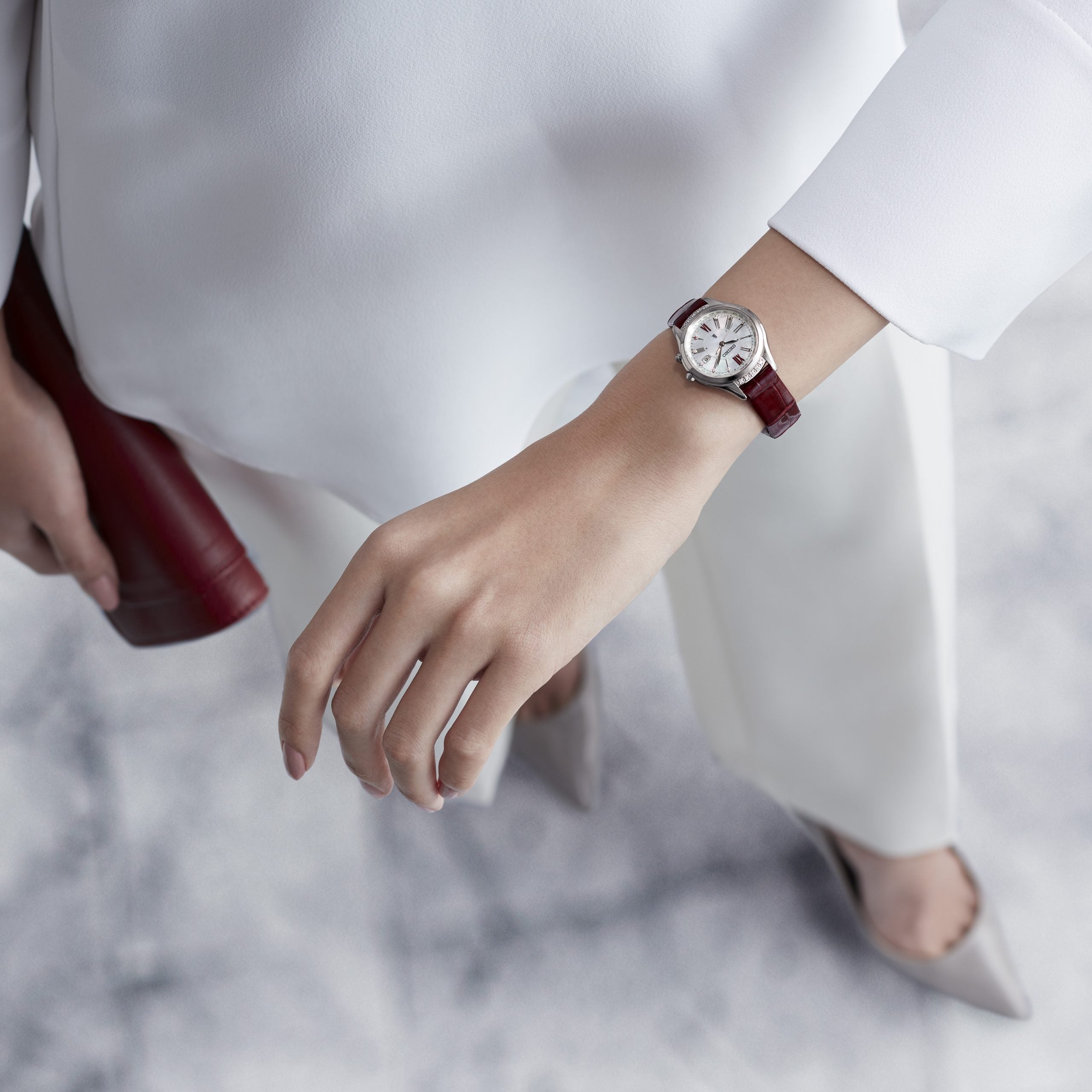 アシンメトリーなローマ数字レイアウトと25周年の記念に配した、25分位置のルビーがポイント。 また、赤をアクセントにしつつ、さりげなく個性をアピールするデザインが上品かつ高級感のある腕元を演出します。 ビジネスからカジュアルスタイルにはもちろん、フォーマルにも合わせやすく、年代問わずお使いいただけます。 【世界数量限定1000個】 誕生日・記念日・就職祝いなど、大切な方へのプレゼントにも人気! ルキアは綾瀬はるかさんがイメージキャラクターのブランドです💕 商品番号:SSVV059 発売日:20年3月7日 ななぷれ価格 120,000+税 |