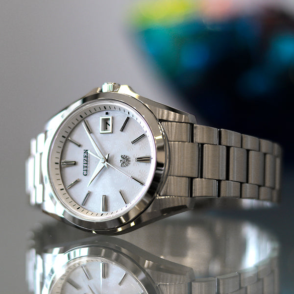 文字盤のイーグルマークには金属素材を採用、シャープなデザインです。 幅広いユーザーにおすすめしやすいサイズ感も魅力です。 また、暗い場所での視認性に優れた夜光付き針もポイント。 シンプルかつ高級感のあるデザインは冠婚葬祭、スーツスタイル、ビジネスなど様々なシーンで活躍します。 プレゼントにもおすすめです。 シチズンが誇る最先端テクノロジーの結晶ともいえるザ・シチズン。 ザ・シチズンの世界観を追求しながらも、モダンでスポーティーな印象に仕上げたコレクションです。 商品番号:AQ1050-50F ななぷれ価格 299,200円(税込) ▼コチラからご購入いただけます▼
