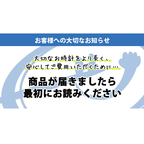 ■商品の状態 当店では担当スタッフが商品入荷時にひとつひとつに検品を行い 時刻合わせ を行っております。 ※但し、機械式や一部商品除くただ万が一、動作不良やお気になる点がございましたら、ご到着より7日以内の未使用品に関しては、交換または返金にてご対応をさせていただきます。 ※商品不具合により、返品・交換をご希望の場合 →詳細はこちら ■同梱物 当店では、お時計と一緒に以下を同梱しております。 万が一お入れ忘れがないかご確認くださいませ。 ・お買い上げ明細書(外部倉庫より発送している場合はなし)・保証書・取扱説明書(WEBマニュアルの案内) ※保証書や取り扱い説明書はBOXの隙間や底にお入っている場合があります。見当たらない場合は今一度BOXの底や裏側などをご確認くださいませ。 ※商品によって同梱物に多少の違いがございます。詳細に関してはお買い求めの商品ページも合わせてご確認くださいませ。 ■電池交換 ご購入時に内蔵されております電池はモニター電池と呼ばれる、時計製造の際動作チェックをする為に内蔵している電池となります。 そのため、仕様年数に満たない間に止まってしまう事がございますが、不良品等ではございませんのでご安心くださいませ(^^) その際は、当店へご依頼いただくかお近くの時計店にて電池交換(または電池の残量確認)をお願いいたします。  電池交換に関しましては保証対象外となっておりますので、かかる費用に関しましてはお客様ご負担となります事、ご理解くださいませ。 ※当店は大阪堺市に実店舗もございます! →詳細はこちら ■お届け時止まっていた場合やすぐに止まってしまったら? お買い上げ後2週間以内に電池が切れて止まってしまった場合は、往復の送料と電池交換代を無料で早急にご対応させていただきます! その際はお手数ではございますが、まずは当店までご連絡くださいますようお願いいたします。 ■サイズ調整 お時計の腕周りのサイズは大きめに作られておりますので、ほとんどの場合お届け後サイズ調整が必要です。 非常に小さなパーツを使用しておりますのでパーツの紛失や、慣れていないと作業時にお時計に傷をつけてしまう場合がございます。 そのため、お近くの時計専門店等で調整をご依頼いただくことをオススメいたします(^^) ※当店は大阪堺市に実店舗もございます! →詳細はこちら※SEIKOやCITIZEN等の一部商品には、調整キットが付属しているお時計がございます。 こちらは説明書をお読みいただければご自身で比較的簡単に調節が可能です。...