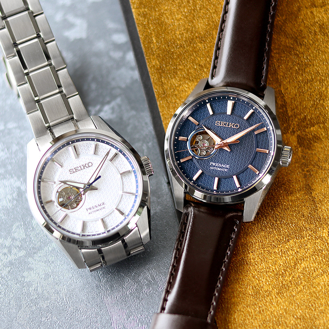 文字盤は金沢漆器の技術を用いて、金沢の夏の緑を思わせる「緑」の漆を漆芸家の田村氏が新たに制作。 夏の苔むした風景を連想させる緑漆に、降り注ぐ木漏れ日をダイヤルレイアウトで表現。 3つの扇形に動く針を備えた、CAL.6R24を用いることで特別感を高めた限定モデルです。 スーツスタイルから、休日の大人カジュアルまでシーンを問わずお使いいただけ、プレゼントにもおすすめです。 [機械式腕時計] PRESAGE(プレザージュ)は、機械式ムーブメントの力強さを優雅な姿に転化させた、世界に向けて展開する日本発信のメカウォッチです。 商品番号:SARD015 ななぷれ価格 220,000円(税込) ▼コチラからご購入いただけます▼ E