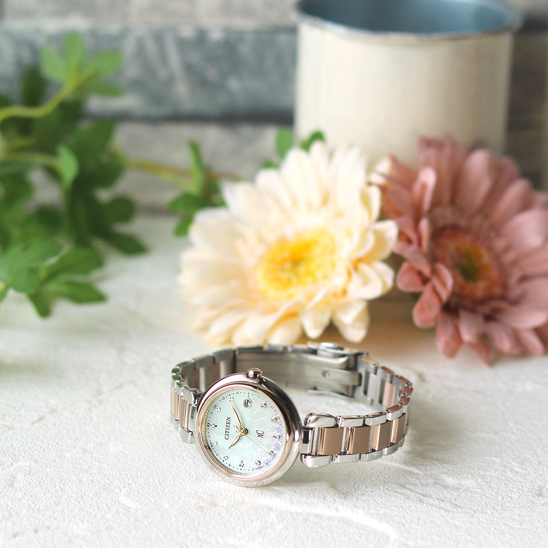 光にインスパイアされた、やわらかなデザインが魅力のトノー型モデル。 文字板はフェミニンな印象の淡いピンクカラー。 洗練されたデザインのローマ字フォント、4時と5時の間にあるTYO位置にはきらめく光のアクセントが女性の心をくすぐります。 ケースとバンドの隙間にピンクゴールドをあしらった、クロスシーらしさが漂うツートン仕様。 上品な華やかさを演出しています。 前を向く女性を応援するエンパワーウオッチブランド、シチズンxC(クロスシー)。 クロスシーは北川景子さんがイメージキャラクターのブランドです💕 商品番号:ES9364-57W 発売日:22年2月17日 ななぷれ価格 45,430円(税込) ▼コチラからご購入いただけます▼