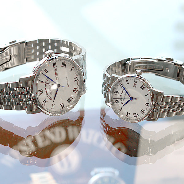 視認性の良いローマインデックスを採用。 女性の腕元を、エレガントに演出します。 また、ペアウォッチとしてもおすすめです。 [機械式腕時計][ミリタリーウォッチ] WEST END(ウエストエンド)は、1864年にスイスのサンティミエで設立。 英国軍への供給を目的とした最初の腕時計の製造を開始し、第一次世界戦時中に供給したことにより、中東やインドにまで流通を展開。 戦時中にスイスから世界各地への過酷な輸送経路においても不具合をきたさなかった時計として、その性能と信頼性が支持されました。 商品番号:WE-SCD-32-WH-SS-B・WE-SCD-40-WH-SS-B ななぷれ価格 (WE-SCD-40-WH-SS-B) 90,000+税 |