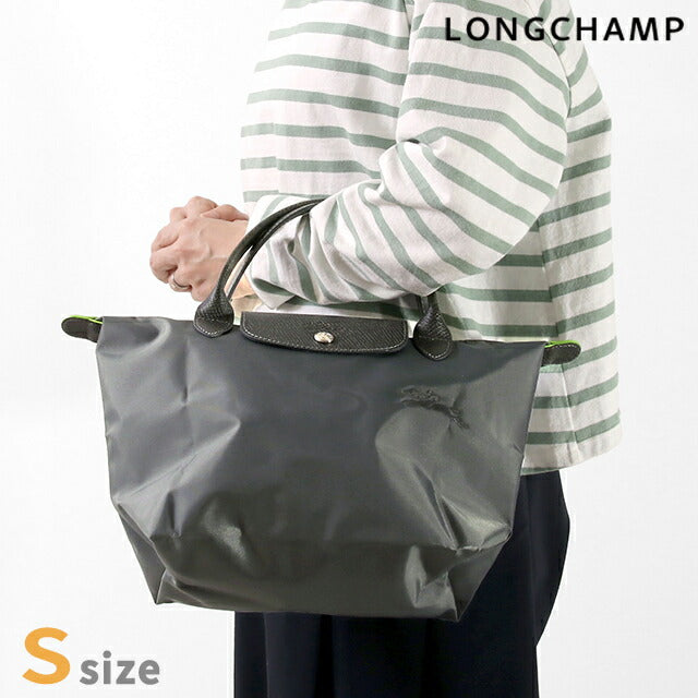 ロンシャン トートバッグ レディース ブランド プリアージュ グリーン S トップハンドルバッグ バッグ 折り畳み 軽量 ハンドバッグ サステナブル 再生ポリアミドキャンバス地 1621 919 P66 LONGCHAMP グラファイト ◆LONGCHAMP(ロンシャン)は、1948年にフランス・パリで創業されたラグジュアリーブランドです。レザーに関するサヴォワールフェールをメゾンの核としたレザーアイテムを扱うブランドです。 「ル プリアージュ グリーン」は再生素材を採用したサステナブルなラインです。ボディをナイロンからリサイクルナイロンに切り替えただけではなく、パーツにも再生素材を採用することで、環境への負荷をより軽減し、製作時の二酸化炭素排出量で換算するとジーンズ1本分の1/6まで抑えています。折りたたむことができ、軽量で使いまわしの効くオリジナルデザインで、通勤や通学、マザーズバッグとしても活躍します。