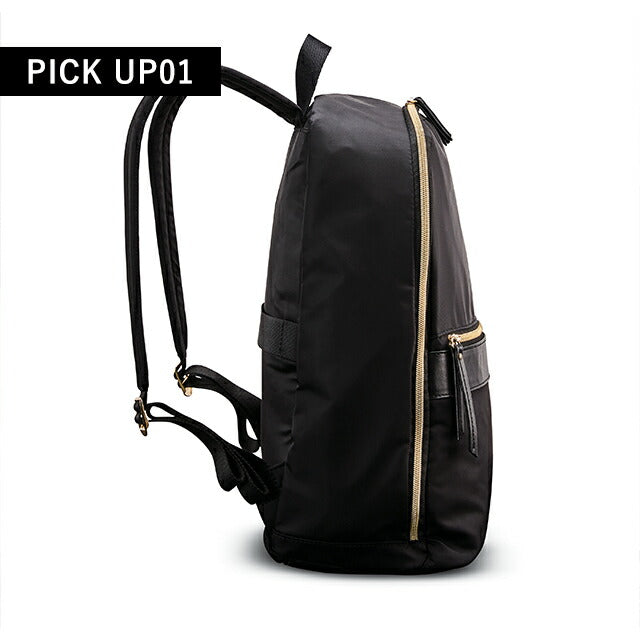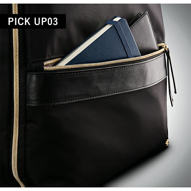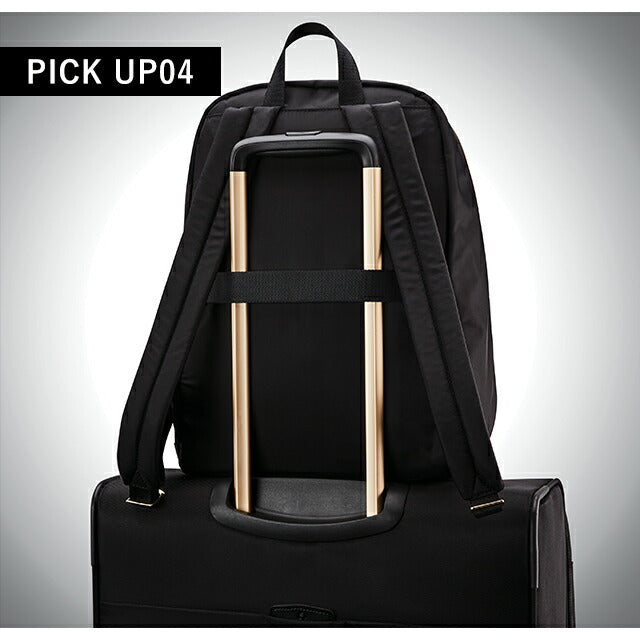 サムソナイト リュック レディース ブランド MOBILE SOLUTION バッグ PCバッグ マザーズバッグ ビジネスカバン リュック バックパック リュックサック スクールバッグ ナイロン 128170-1041 Samsonite ブラック ◆1910年にコロラド州デンバーで創立され、世界初の軽量スーツケースやキャスター付きスーツケースなど耐久性とデザイン性に優れている商品を提供しているサムソナイト。スーツやビジネススタイルにマッチするデザインが特徴です。火のように軽いファイアーライトや耐久性に優れているネオパルスなど、その種類は様々。「飛行機でより遠くへ旅するためのスーツケースへ」を心がけており、日々努力を重ねています。 光沢のあるナイロン素材にゴールドカラーのハードウェアが映えるバックパック。フロントにミニマルなロゴマークをあしらったシンプルなデザインなのでビジネスシーンでも活躍してくれます。
