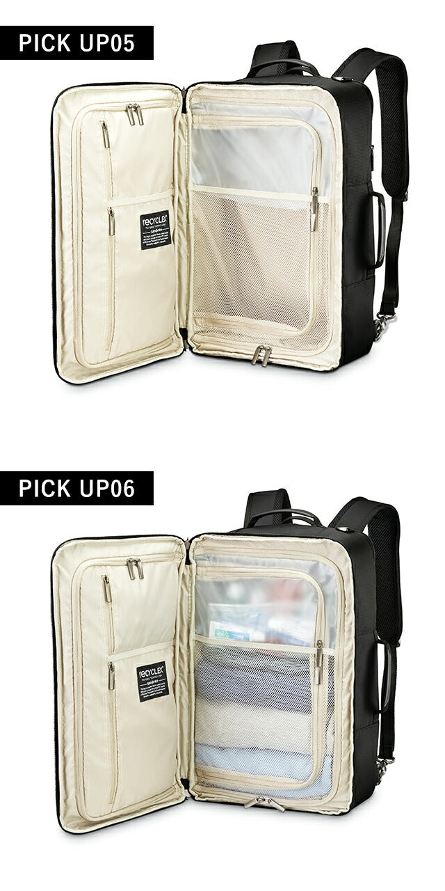| 仕様 | 開閉:ダブルファスナー式 ・前面収納 ジッパーメッシュポケット×1、ジッパーポケット×1、ペンポケット×3、キーリーシュ ・メイン収納 ジッパーポケット×5、ジッパーメッシュポケット×1、調節可能な衣類圧縮パネル ・後面収納1 ノートパソコン、タブレット用収納ポケット ・後面収納2 ジッパーポケット TecKitポーチ サイドポケット×1(拡張可能) 取り外し可能なショルダーストラップ スマートスリーブ ジッパー予備 |