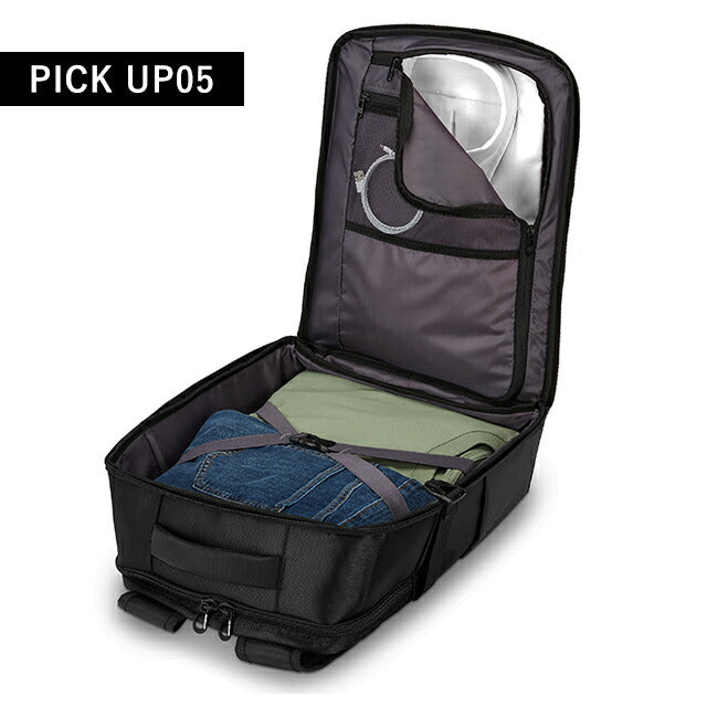 | 仕様 | 開閉:ダブルファスナー式 ・外側1 フロントジッパーポケット、オープンポケット×1、ペンポケット×2 ・外側2 フロントジッパーポケット、ジッパーポケット×1、メッシュポケット×1 ・外側3 ノートパソコン収納、オープンポケット×1 サイドポケット×2 |