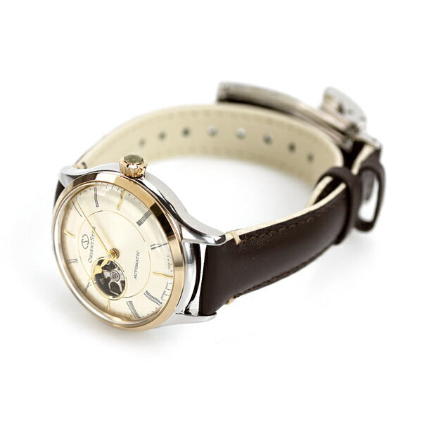 正規品 7年保証キャンペーン 送料無料 オリエントスター クラシック セミスケルトン 草木にそそぐひかり 日本製 自動巻き レディース 腕時計 RK-ND0010G ORIENT STAR Classic Semi Skeleton アナログ シャンパンゴールド×ブラウン 革ベルト ◆「やさしいひかり」をデザインコンセプトにしたモデルが登場。変わらない日常や自然の景色から感じる穏やかな幸福感を、ナチュラルで淡いトーンのカラーダイアルで表現しました。文字盤の中央部分と9時位置のセミスケルトン部分にはダイヤカットを施し、大小のひかりの輪の重なりを表現。また、やわらかな曲線を描くボックスガラスやボンベ文字盤を組み合わせることで、クラシカルな印象を与えるデザインに。ベルトには横から見た時にも表面・裏面両方の素材が見える、フランス仕立てのベルトを採用し、クラシカルなデザインを引き立てる、雰囲気のある仕上がりを実現。台形形状により操作性を高めたりゅうずにはラインストーンをセットし、側面から見た時にもエレガントな表情を演出します。 発売日:21年9月発売 機械式腕時計 Made in Japan