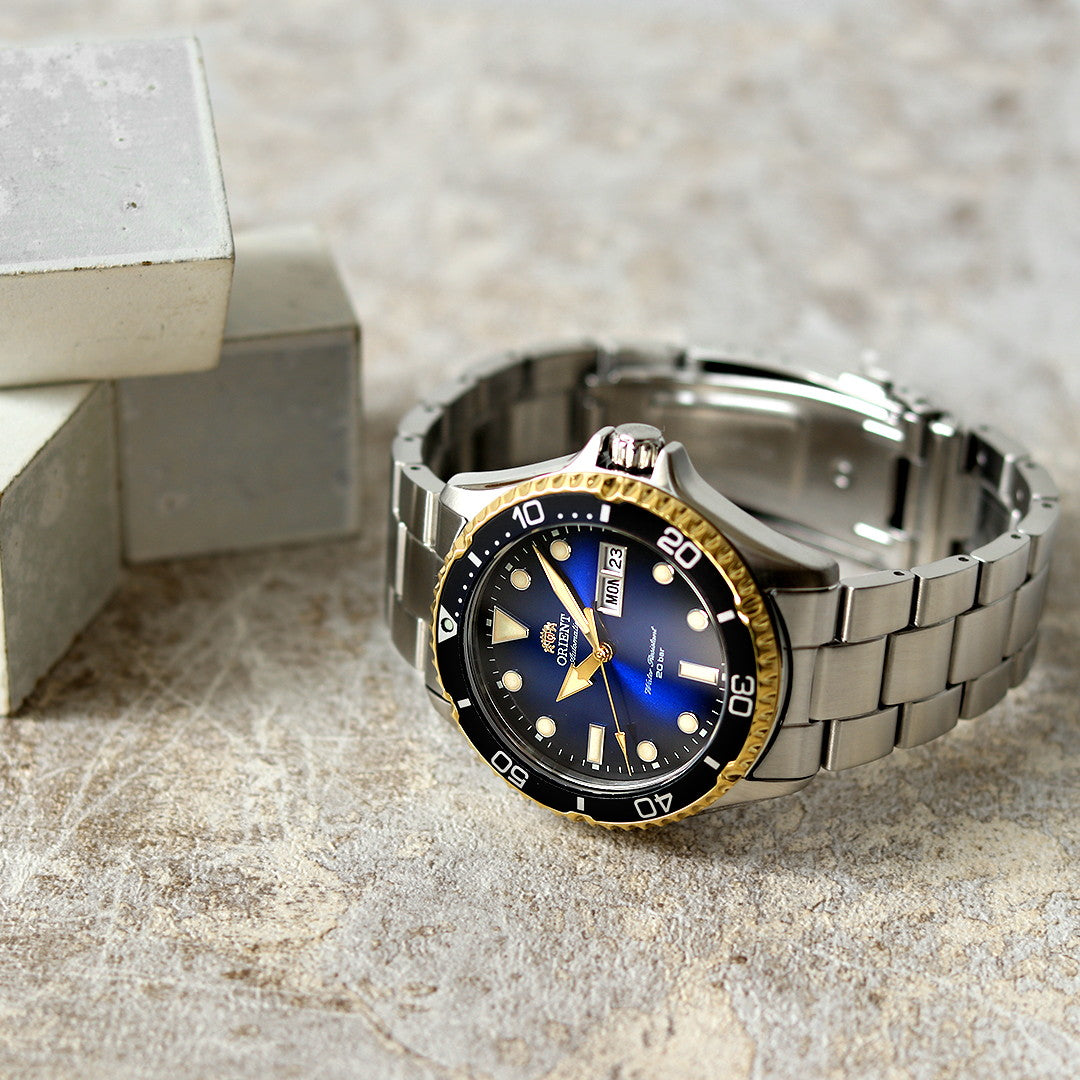 正規品 7年保証キャンペーン 送料無料 オリエント スポーツ ダイバーデザイン 限定モデル 日本製 自動巻き メンズ 腕時計 RN-AA0815L ORIENT SPORTS アナログ ブルーグラデーション ◆2018年に発売され人気を博した数量限定モデルを彷彿とさせる、特別感あるデザインが特徴。グラデーションの文字盤にベゼルを組み合わせることでトレンド感を楽しみながら、特別感を感じられるデザインに仕上げました。12時位置の三角マーカーと目盛りの15分を堺に色分けされた回転ベゼルが、風合い溢れるグラデーションの文字盤をより一層引き立てます。また、デザイン性だけではなく、サファイアクリスタルの風防・20気圧の日常生活強化防水・安定した高精度と信頼性を実現する自動巻ムーブメントを採用し、日常使いするアイテムとしての使いやすさにもこだわりました。小ぶりなケースデザインのため、スポーツやアウトドアのみならず、様々なシーンで合わせやすいアイテムです。※ISO規格に準拠したダイバーズウオッチではありません。 全世界数量限定2800個 発売日:22年3月発売 機械式腕時計