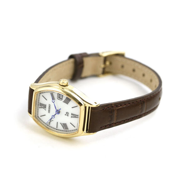正規品 7年保証キャンペーン 送料無料 オリエント イオ ナチュラル&プレーン トノー カレンダー 日本製 ソーラー レディース 腕時計 RN-WG0013S ORIENT iO NATURAL&PLAIN アナログ アイボリー×ブラウン 革ベルト ◆「iO(イオ)」はファッションも遊ぶときも、とにかく好きなものには徹底的にこだわり、他のものには見向きもしない、そんな“素敵にワガママな女の子たち”のハートをキャッチする、ハツラツとした若い女性に発信するブランドです。 小ぶりなトノー型に、ソーラーと同じ、太陽や蛍光灯などの光を電気エネルギーに換えて駆動するライトチャージ搭載モデル。ガラスにはサファイアガラスを採用し、見やすさにももこだわりました。ローマインデックスが女性らしい腕元を演出。上品かつ高級感のあるデザインで、カジュアルからスーツスタイルまでシーンを選ばず腕元を飾ります。 発売日:18年9月発売 Made in Japan