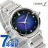 正規品 7年保証キャンペーン 送料無料 シチズン エル UNITE with BLUE ROUND Collection 数量限定 ダイヤモンド ソーラー エコドライブ エコ・ドライブ レディース 腕時計 EM1060-87L CITIZEN L UNITE with BLUE ROUND Collection アナログ ブルー ◆2023年に発売され、人気を博したブランド横断企画“UNITE with BLUE”。より深く、より静かに、より青く。光の反射で様々な表情を見せる構造色文字板が、“青の時、ひとつの世界。”をコンセプトに、新たな青を表現しました。地球のように美しいサステナブルウオッチ、CITIZEN L(シチズン エル)。静かな深海の様子をイメージして、静を感じさせるデザインと少し大きめのフェイスが、構造色の魅力を強調。凜とした佇まいが魅力の1本です。4ヵ所に配したダイヤモンドは、深海から立ち上る気泡のきらめきを表現。文字板の外周にインクジェットのグラデーションを重ねることで、深海の静けさの中に輝く泡を際立たせています。 発売日:2025年6月発売