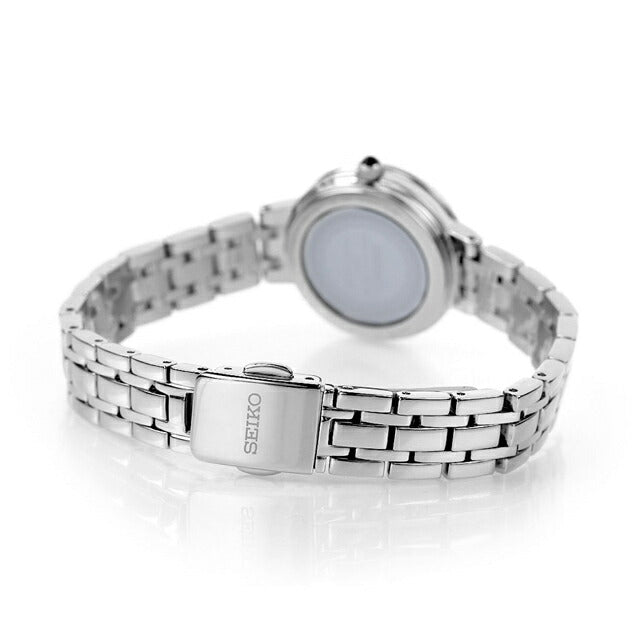 正規品 7年保証キャンペーン 送料無料 SEIKO エクセリーヌ 電波ソーラー ダイヤモンド レディース SWCW007 DOLCE&EXCELINE 腕時計 ブルーシェル 充実した人生を楽しむ大人の女性へ向けた、ジュエリーのような輝きを放つ、気品溢れるエレガントなソーラー電波ウォッチです。文字盤には角度によってその輝きを変える白蝶貝を採用し、ケースには26Pものダイヤを贅沢にあしらっています。フォルムの美しさ、時刻の読み取りやすさ、付け心地に加え、時刻合わせが不要という実用性とデザイン性を兼ね備えたハイスペックモデルです。 発売日:13年1月発売