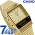 7年保証キャンペーン カシオ CASIO クラシック クォーツ 電池式 クォーツ 電池式 ユニセックス 腕時計 AQ-800EG-9ADF CLASSIC アナデジ ゴールド ◆1980年代発売のAQ-450をモチーフにし、レトロとスタイリッシュが融合したモデルです。文字板と液晶が独立したデザインで、アナログの美しさとデジタルの機能性を両立。アナログ文字板はシンプルなバーインデックスと時分針で構成。盤面に格子柄をあしらい、レトロな雰囲気に仕上げました。ケース液晶部はトップ面を傾斜させたスタイリッシュな形状に仕上げています。また角型フォルムのケースと横長の駒形状を採用したメタルバンドを組み合わせることで、面構成が際立つスタイリッシュな外観に。ストップウオッチ、アラーム、デュアルタイム等、日常生活に便利な機能も備えています。オンオフ問わずコーディネートに合わせやすい時計です。 国内モデル品番:AQ-800EG-9AJF