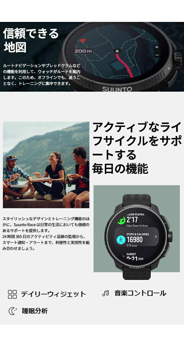 正規品 スント レース チタニウム チタン メンズ レディース スマートウォッチ SS050933000 SUUNTO RACE TITANIUM Amethyst デジタル パープル ◆Suunto(スント)は、フィンランドの冒険家トーマス・ヴォホロネン(Tuomas Vohlonen)によって80年以上前に創設されました。過酷な条件下での製品テストなど独自の水準を追及しています。 Suunto Raceは、レースやチャレンジの準備を整えるためのツールを備え、トレーニングと回復のバランスをサポートします。鮮明な1.43インチのタッチスクリーンは、高速に動く状況や日光の中でも確実な読みやすさを実現します。リューズは、機能を閲覧するときに、かつてないほどの利便性と容易性を実現します。軍用基準でテストされているため、最も厳しい条件下に最適です。レースやトレーニングに最適な究極の性能を発揮するウォッチです。
