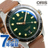 正規品 7年保証キャンペーン オリス ダイバーズ 65 40mm スイス製 自動巻き メンズ 腕時計 733-7707-4357LBR ORIS DIVERS SIXTY-FIVE アナログ ラウンド グリーン×ブラウン 革ベルト ◆ORIS(オリス)は、ポール・カッティン氏とジョージ・クリスチャン氏の2人によってスイスのヘルシュタインで創設されました。近くを流れる小川にちなんで社名をオリスと命名。手頃な価格ながら、革新的で高機能かつ実用的な機能を備えた本格機械式時計で知られ、世界中の時計ファンから愛されているブランドです。 オリス初のダイバーズウォッチ「ダイバーズ65」シリーズ。1965年にプロダイバーや海軍に販売していたモデルが原型。当時のプレキシガラスを彷彿とさせる湾曲したガラスやヴィンテージ感溢れるブラックベゼルなど高い再現性を誇ります。ベゼルにはブロンズ加工が施され、よりヴィンテージな雰囲気に。カジュアルスタイルにはもちろん、クラシックな大人の装いにも味わいを添えてくれます。 機械式腕時計