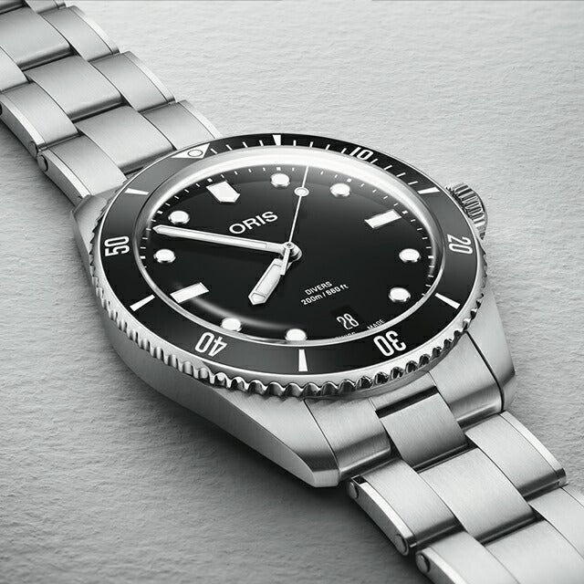 正規品 7年保証キャンペーン オリス ダイバーズ デイト 39mm 替えベルト スイス製 メンズ 腕時計 01 733 7795 4054-Set ORIS Divers アナログ ブラック 黒 ◆ORIS(オリス)は、ポール・カッティン氏とジョージ・クリスチャン氏の2人によってスイスのヘルシュタインで創設されました。近くを流れる小川にちなんで社名をオリスと命名。手頃な価格ながら、革新的で高機能かつ実用的な機能を備えた本格機械式時計で知られ、世界中の時計ファンから愛されているブランドです。 1960年代のダイバーズウォッチからインスパイアされた、当時のクリエイティブで楽しいデザインを引き継ぐ時計です。見た目の美しさと機能、信頼性を兼ね備えた、笑顔をもたらすコレクション。セラミックベゼルインサートや2気圧(200m)防水など、デザインと機能をアップグレードしています。