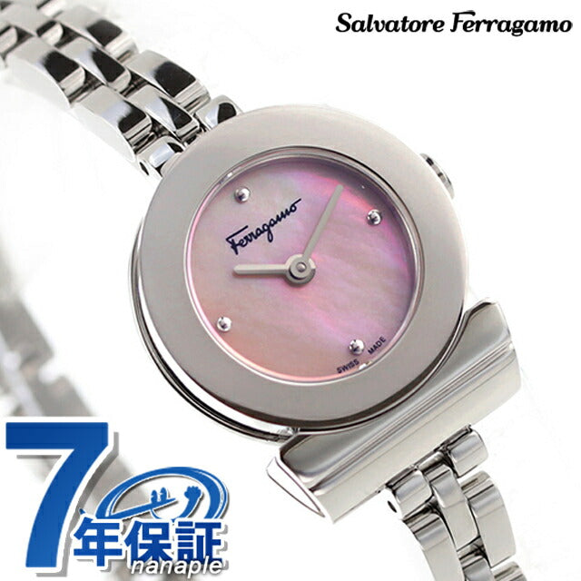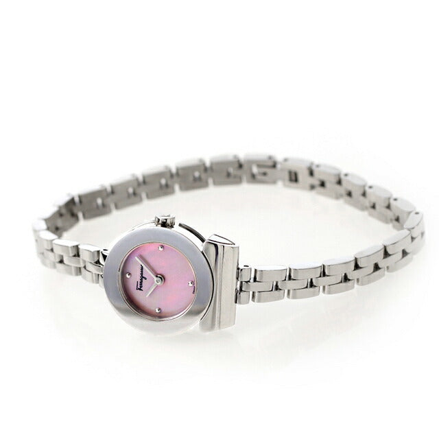 7年保証キャンペーン サルヴァトーレ・フェラガモ ガンチーニ ブレスレット 22.5mm クオーツ スイス製 レディース 腕時計 FBF070017 Salvatore Ferragamo GANCINO BRACELET 22.5mm アナログ ピンクシェル ◆創業者の名を冠したサルヴァトーレ フェラガモは、靴の専門店でした。美しいデザイン、優れた技術、履き心地の良さで世界中にその名を轟かせ、現在ではトータルファッションブランドとして知られています。フェラガモウォッチは提携工場での組み立てを行っており、スイス製のムーブメントを用いています。伝統的なイタリアのクラフトマンシップを随所に生かし、シンプルながらも洗練された個性を感じさせるデザインが魅力です。 アイコンであるGANCINO(ガンチーニ)モチーフを採用したモデル。細めのブレスレットが女性らしいデザインです。アクセサリーとしてもお使いいただけます。