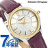 7年保証キャンペーン サルヴァトーレ・フェラガモ フェラガモ タイム 34mm スイス製 クオーツ レディース 腕時計 FFV030016 Salvatore Ferragamo FERRAGAMO TIME アナログ ラウンド シルバー×パープル 革ベルト ◆創業者の名を冠したサルヴァトーレ フェラガモは、靴の専門店でした。美しいデザイン、優れた技術、履き心地の良さで世界中にその名を轟かせ、現在ではトータルファッションブランドとして知られています。フェラガモウォッチは提携工場での組み立てを行っており、スイス製のムーブメントを用いています。伝統的なイタリアのクラフトマンシップを随所に生かし、シンプルながらも洗練された個性を感じさせるデザインが魅力です。 シンプルな中にも、フェラガモらしい大人の女性の魅力を感じさせるウォッチです。カジュアにもスーツスタイルにもお使いいただけます。
