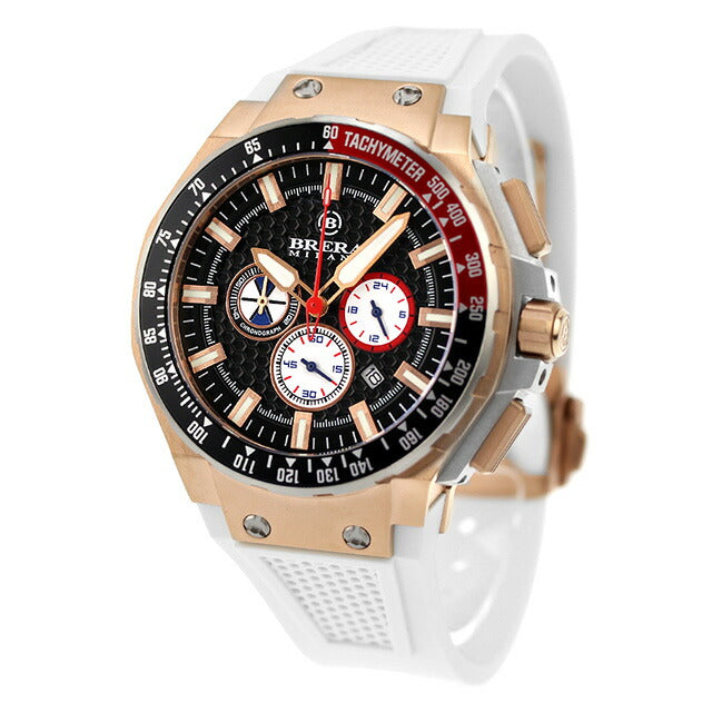 正規品 ブレラ ミラノ グランツーリスモ GT2 クロノグラフ メンズ 腕時計 BMGTQC4502B BRERA MILANO GRANTURISMO GT2 アナログ ブラック ホワイト 黒 ◆BRERA MILANOブランドは、2008年に創設されたBRERA OROLOGI創業コンセプトの延長として、2021年1月に誕生しました。イタリアでデザインされた腕時計が必ず持つべき三つの要素、つまり現代性、品質、魅力を要約しています。最高のデザインと職人技に深く根ざした緻密なイタリアの研究の結果で、長年にわたって着用者を満足させる能力を持つユニークな製品の品質を生み出します。 GRAN TURISMOは手元で圧倒的な存在感を発揮する大型ケースに、ブレラならではのカラフルで洗練されたカラーリングが人気のタイムピース。自動車のディテールから着想を得た遊び心あふれるデザインが特徴のこのモデルは、ペダル型プッシュボタンやハニカム(蜂の巣)構造のフロントグリルダイヤル、ケースに直接組み込んだラバーベルトの付け心地に優れ、スポーティで男らしい腕元を演出します。