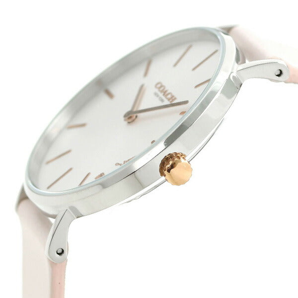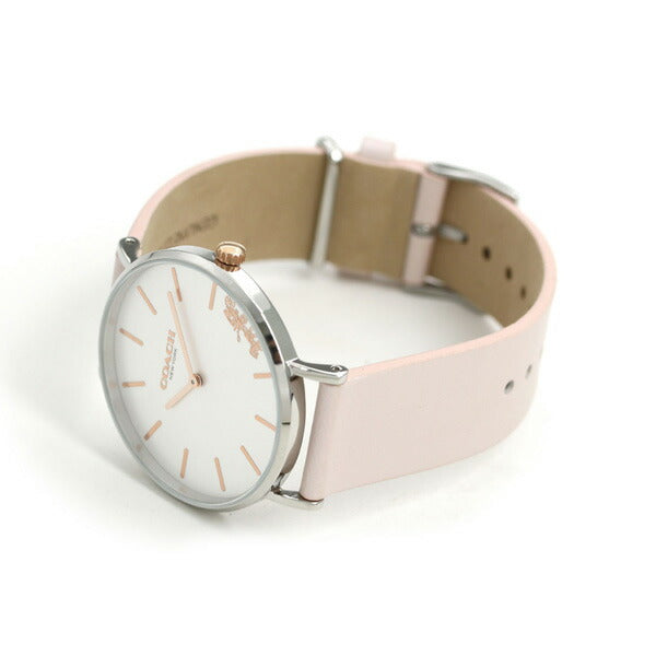 3年保証キャンペーン コーチ ペリー 36mm 14503118 クオーツ レディース 腕時計 COACH PERRY アナログ シルバー×ライトピンク 革ベルト ◆コーチは1941年にマンハッタンの小さなロフトで皮革製品の家内工業として始まりました。今日では世界中で絶大な人気を誇るファッションブランドです。男女問わず多岐にわたるシックで機能的なアクセサリーにきめ細かな最高品質の素材を用いて、現代的なアメリカンスタイルを取り入れた身近な高級品という新しい定義を形成しています。コーチブランドの柄、色、詳細な金具を取り入れたコーチウォッチは、最新のコーチバッグやデザインコレクションと新鮮でファッショナブルにマッチすると共に、精密なクオーツを備えてます。 ニューヨークシティのウェストヴィレッジの静かな通りの名前にちなんだペリー。伝統的なラウンド型のウォッチで、日常使いにぴったりです。4時位置のブランドロゴとシグネチャー柄の遊革がポイント。シーンを選ばないデザインは、自分へのご褒美にはもちろん、プレゼントにもオススメです。