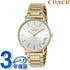 3年保証キャンペーン コーチ レディース 腕時計 14503345 COACH PERRY アナログ シルバー イエローゴールド ◆コーチは1941年にマンハッタンの小さなロフトで皮革製品の家内工業として始まりました。今日では世界中で絶大な人気を誇るファッションブランドです。男女問わず多岐にわたるシックで機能的なアクセサリーにきめ細かな最高品質の素材を用いて、現代的なアメリカンスタイルを取り入れた身近な高級品という新しい定義を形成しています。コーチブランドの柄、色、詳細な金具を取り入れたコーチウォッチは、最新のコーチバッグやデザインコレクションと新鮮でファッショナブルにマッチすると共に、精密なクオーツを備えてます。 PERRY(ペリー)コレクション。シンプルミニマムなデザインでシーンを選ばずお使いいただけます。コーデのアクセントになる36ミリのボーイズサイズ。見やすくシンプルな文字盤、2針ですっきりした印象の1本です。