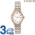 3年保証キャンペーン コーチ レディース 腕時計 14503604 COACH ARDEN アナログ ホワイト ピンクゴールド 白 ◆コーチは1941年にマンハッタンの小さなロフトで皮革製品の家内工業として始まりました。今日では世界中で絶大な人気を誇るファッションブランドです。男女問わず多岐にわたるシックで機能的なアクセサリーにきめ細かな最高品質の素材を用いて、現代的なアメリカンスタイルを取り入れた身近な高級品という新しい定義を形成しています。コーチブランドの柄、色、詳細な金具を取り入れたコーチウォッチは、最新のコーチバッグやデザインコレクションと新鮮でファッショナブルにマッチすると共に、精密なクオーツを備えてます。 コンビ使いのメタルカラーベルトでメリハリを効かせた一品。視認性をアップするアラビア数字のインデックス、リューズにあしらったCロゴなどディテールが光ります。フェイスが小さめなので派手になりすぎず、さまざまなスタイリングに合わせていただけます。