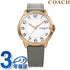 3年保証キャンペーン コーチ レディース 腕時計 14503611 COACH ARDEN アナログ ホワイト グレー 白 ◆コーチは1941年にマンハッタンの小さなロフトで皮革製品の家内工業として始まりました。今日では世界中で絶大な人気を誇るファッションブランドです。男女問わず多岐にわたるシックで機能的なアクセサリーにきめ細かな最高品質の素材を用いて、現代的なアメリカンスタイルを取り入れた身近な高級品という新しい定義を形成しています。コーチブランドの柄、色、詳細な金具を取り入れたコーチウォッチは、最新のコーチバッグやデザインコレクションと新鮮でファッショナブルにマッチすると共に、精密なクオーツを備えてます。 視認性の高いアラビア数字のインデックスを使用したウォッチ。ステッチが映えるレザーバンドがクラシカルな雰囲気を演出します。メタリックベゼルを組み合わせることで、華やかさをアップ。流行に左右されず、長くご愛用いただけます。