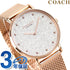 3年保証キャンペーン コーチ ペリー 36mm クオーツ レディース 腕時計 14503631 COACH PERRY アナログ シルバーラメ×ピンクゴールド ◆コーチは1941年にマンハッタンの小さなロフトで皮革製品の家内工業として始まりました。今日では世界中で絶大な人気を誇るファッションブランドです。男女問わず多岐にわたるシックで機能的なアクセサリーにきめ細かな最高品質の素材を用いて、現代的なアメリカンスタイルを取り入れた身近な高級品という新しい定義を形成しています。コーチブランドの柄、色、詳細な金具を取り入れたコーチウォッチは、最新のコーチバッグやデザインコレクションと新鮮でファッショナブルにマッチすると共に、精密なクオーツを備えてます。 ニューヨークシティのウェストヴィレッジの静かな通りの名前にちなんだペリー。伝統的なラウンド型のウォッチで、日常使いにぴったりです。文字盤のラメがポイント。プレゼントにもオススメです。