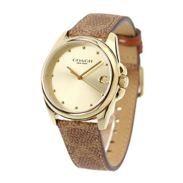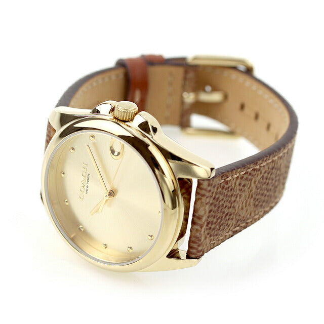 3年保証キャンペーン コーチ グレイソン クオーツ レディース 腕時計 14504111 COACH GREYSON アナログ ゴールド ブラウン 革ベルト ◆コーチは1941年にマンハッタンの小さなロフトで皮革製品の家内工業として始まりました。今日では世界中で絶大な人気を誇るファッションブランドです。男女問わず多岐にわたるシックで機能的なアクセサリーにきめ細かな最高品質の素材を用いて、現代的なアメリカンスタイルを取り入れた身近な高級品という新しい定義を形成しています。コーチブランドの柄、色、詳細な金具を取り入れたコーチウォッチは、最新のコーチバッグやデザインコレクションと新鮮でファッショナブルにマッチすると共に、精密なクオーツを備えてます。 Greysonは、洗練されたデザインが光るタイムピースです。ゴールドの文字盤には、3時位置にコーチのシグネチャーマークがあしらわれています。プレゼントにもおすすめです。