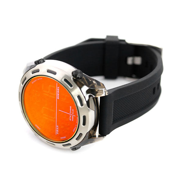 3年保証キャンペーン ディーゼル クラッシャー 47.5mm クオーツ メンズ 腕時計 DZ1893 DIESEL CRUSHER デジタル ラウンド ブラック ◆ディーゼルは若い世代を中心に幅広い層から人気を集める、イタリアで最もオシャレなワーク系カジュアルブランドです。その人気はアパレルだけにとどまらず、腕時計においても斬新なデザインと良い素材を使用した品質ともに高い評価を受けています。 90年代のネオンとアドレナリン求めるスポーツライフスタイルにインスパイアされた、テクニカルと高性能素材のミックスしたCRUSHERコレクション。ブラック×クリアのナイロンケース、ブラックのシリコンストラップを組み合わせは、アイコニックな90年代スタイルを思い起こさせます。また、虹色に輝く偏光クリスタルが目を引き、アクセントになっています。誕生日などのプレゼントにもおすすめです。