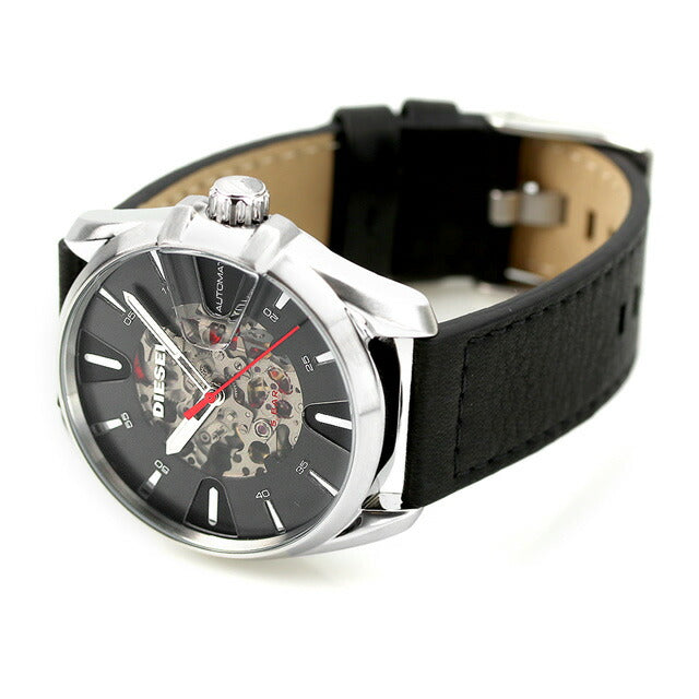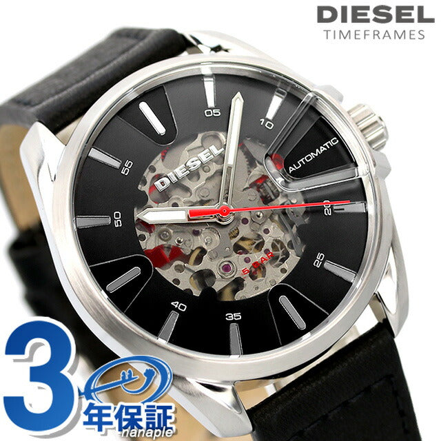 3年保証キャンペーン ディーゼル エムエス9 オープンハート 自動巻き メンズ 腕時計 DZ1966 DIESEL MS9 アナログ スケルトン ブラック 黒 革ベルト ◆ディーゼルは若い世代を中心に幅広い層から人気を集める、イタリアで最もオシャレなワーク系カジュアルブランドです。その人気はアパレルだけにとどまらず、腕時計においても斬新なデザインと良い素材を使用した品質ともに高い評価を受けています。 GIGlassにインスパイアされたMS9シリーズです。バーインデックスを配したブラックのサンレイダイヤルに、ブラックのレザーストラップを組み合わせました。遊び心のあるデザインは、T-シャツなどのカジュアルスタイルにぴったりです。プレゼントにもおすすめ。 機械式腕時計
