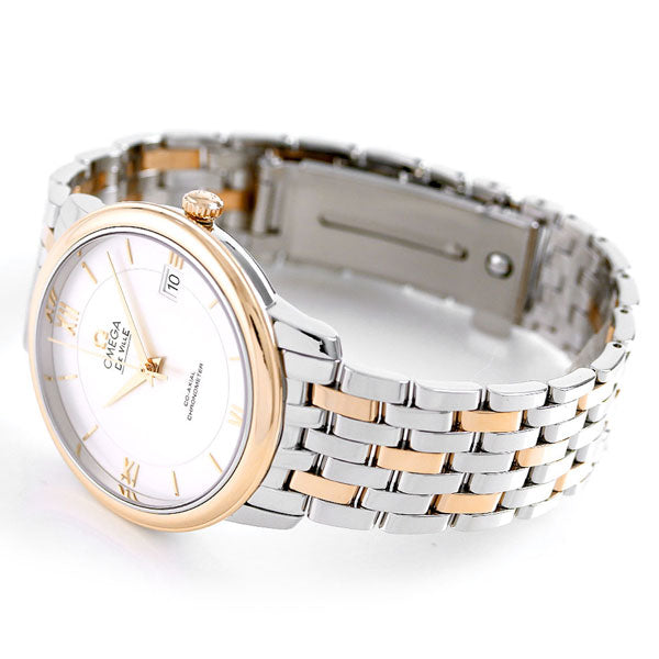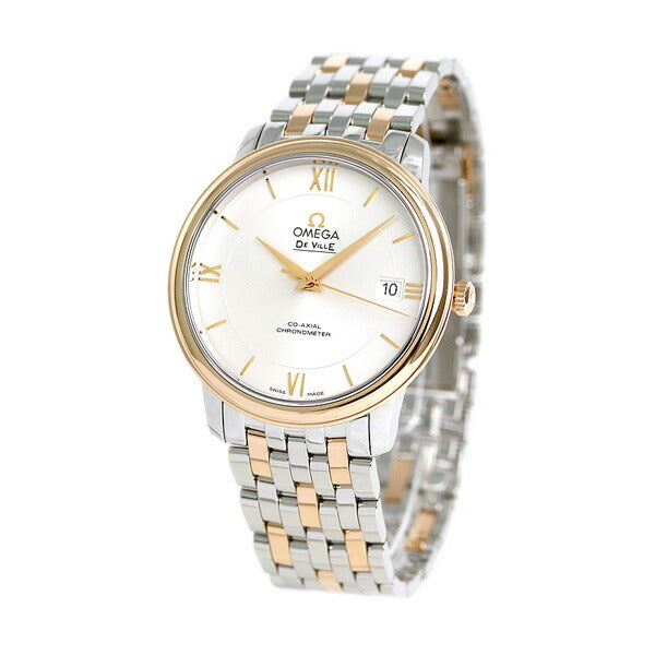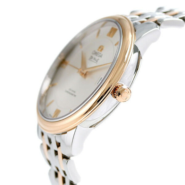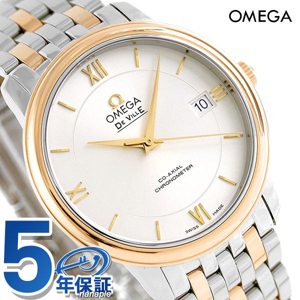 5年保証キャンペーン オメガ デビル プレステージ コーアクシャル 36.8MM クロノメーター スイス製 自動巻き メンズ 腕時計 424-20-37-20-02-002 OMEGA DE VILLE PRESTIGE CO-AXIAL アナログ シルバー×レッドゴールド ◆オメガは1848年、ルイ・ブランによってスイスにて設立された高級腕時計ブランドです。 デ・ヴィル (DE VILLE)はフランス語で「都会」という意味をもちます。1960年、デヴィルは「 シーマスター デ・ヴィル 」として、 シーマスター ラインの一つとして登場しました。流行を先取りしたスタイルやエレガントなデザインが魅力です。ローマ数字と棒字を採用したインデックスは視認性がよく、3時位置に配置した日付表示など実用性も確保しています。 機械式腕時計