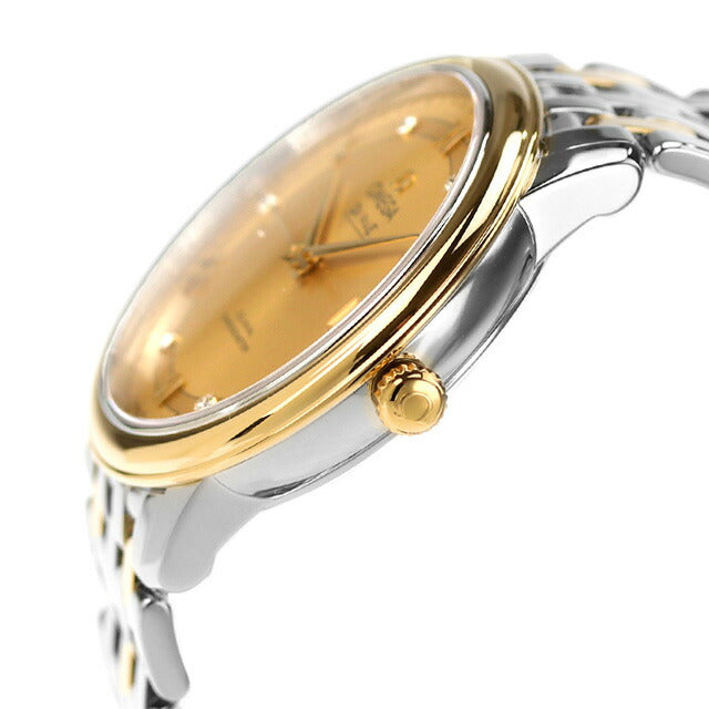 5年保証キャンペーン オメガ デビル プレステージ 37mm ダイヤモンド スイス製 自動巻き メンズ 腕時計 424.20.37.20.58.002 OMEGA VILLE PRESTIGE アナログ イエロー ゴールド ◆オメガは1848年、ルイ・ブランがスイスに時計工房を創設したことから始まります。1894年に発表した懐中時計のムーブメント、「Ω(オメガ/達成と極致の意)」という言葉を正式な社名として採用しました。 デ・ヴィル (DE VILLE)はフランス語で「都会」という意味をもちます。1960年、デヴィルは「 シーマスター デ・ヴィル 」として、 シーマスター ラインの一つとして登場しました。流行を先取りしたスタイルやエレガントなデザインが魅力です。ローマ数字とダイヤモンドのインデックスが特徴。3時位置に配置した日付表示など実用性も確保しています。パーツの摩耗を最小限に抑えて耐久性を上げる事により、オーバーホールの頻度を下げるとともに高い精度も誇るコーアクシャル機能も搭載しています。 機械式腕時計