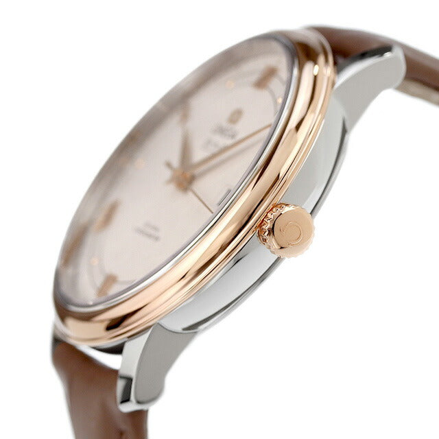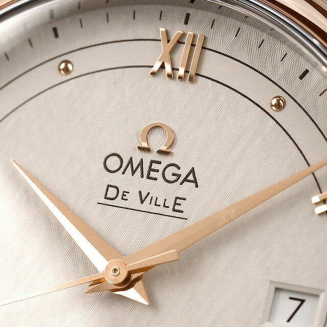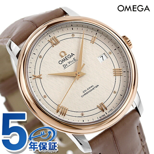5年保証キャンペーン オメガ デビル プレステージ 39.5mm スイス製 メンズ 腕時計 424.23.40.20.02.003 OMEGA DE VILLE PRESTIGE アナログ シルバー グレージュ ◆オメガは1848年、ルイ・ブランによってスイスにて設立された高級腕時計ブランドです。 デ・ヴィル(DE VILLE)はフランス語で「都会」という意味をもちます。 このモデルは、シルク生地にみられるクロス模様のパターンが施された、オパリン仕上げのアイボリーシルバーのダイアルが特徴です。針はゴールドプレート仕上げで、アワーマーカーはゴールドプレート仕上げの6つのカボションとローマ数字で構成されています。3時位置には日付窓が設けられています。39.5mmのケースはステンレススチールおよび18Kレッドゴールド製で、レザーストラップが付属しています。コーアクシャル キャリバー2500搭載。 機械式腕時計