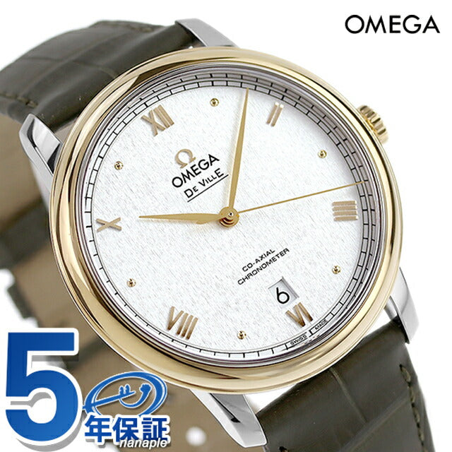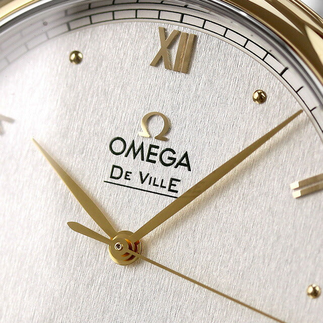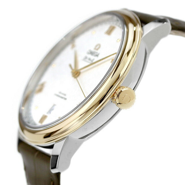 5年保証キャンペーン オメガ デビル プレステージ 39.5mm スイス製 メンズ 腕時計 424.23.40.20.02.004 OMEGA DE VILLE PRESTIGE アナログ シルバー ダークグリーン ◆オメガは1848年、ルイ・ブランによってスイスにて設立された高級腕時計ブランドです。 デ・ヴィル(DE VILLE)はフランス語で「都会」という意味をもちます。 ステンレススチールと18Kイエローゴールドを組み合わせたこのモデルは、シルバーのサンブラッシュ仕上げのダイアルが特徴。エンボス加工された垂直構造と、「レイルウェイ」ミニッツトラックを備えています。6時位置に日付窓があり、オメガのロゴ、ローマ数字、カボションには、針と同じくイエローゴールド仕上げを施しています。オメガ コーアクシャル キャリバー2500を搭載。 機械式腕時計